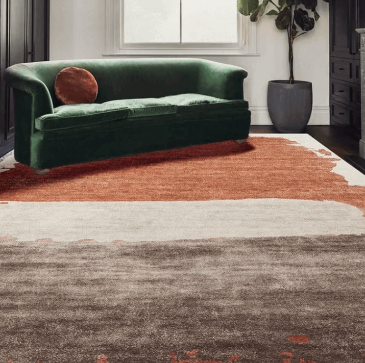 Irregular Orange Rectangular Grid Carpet Area Rug